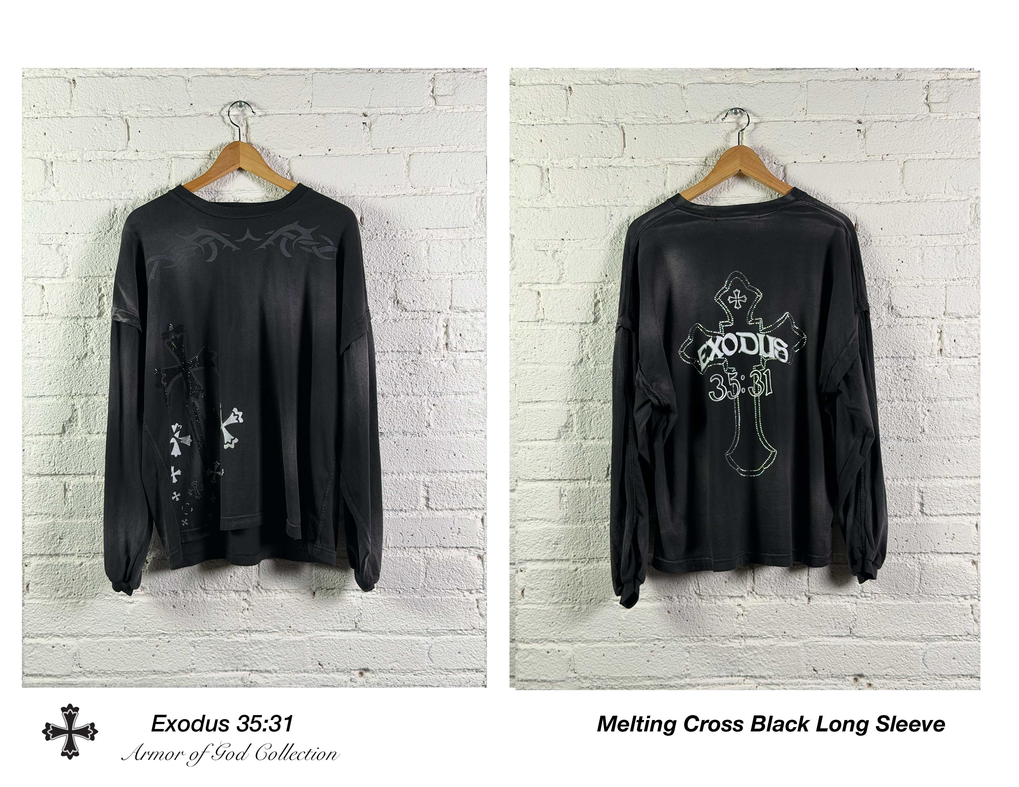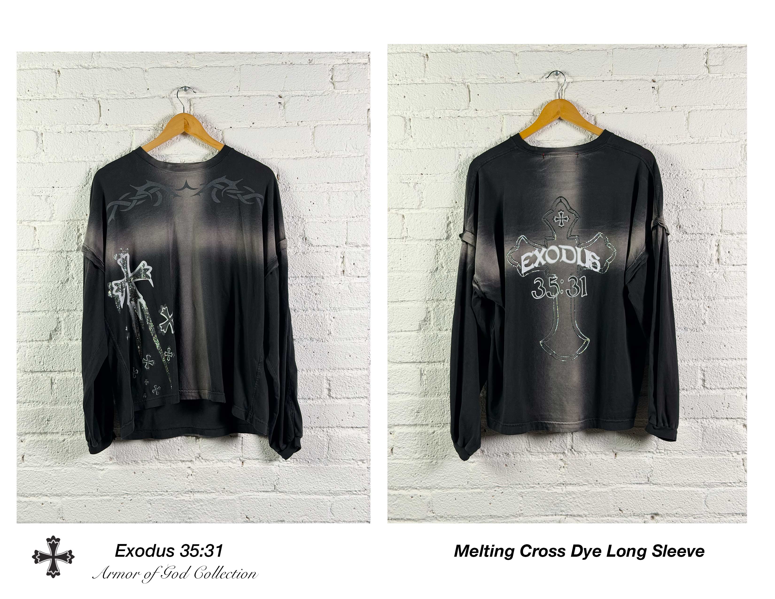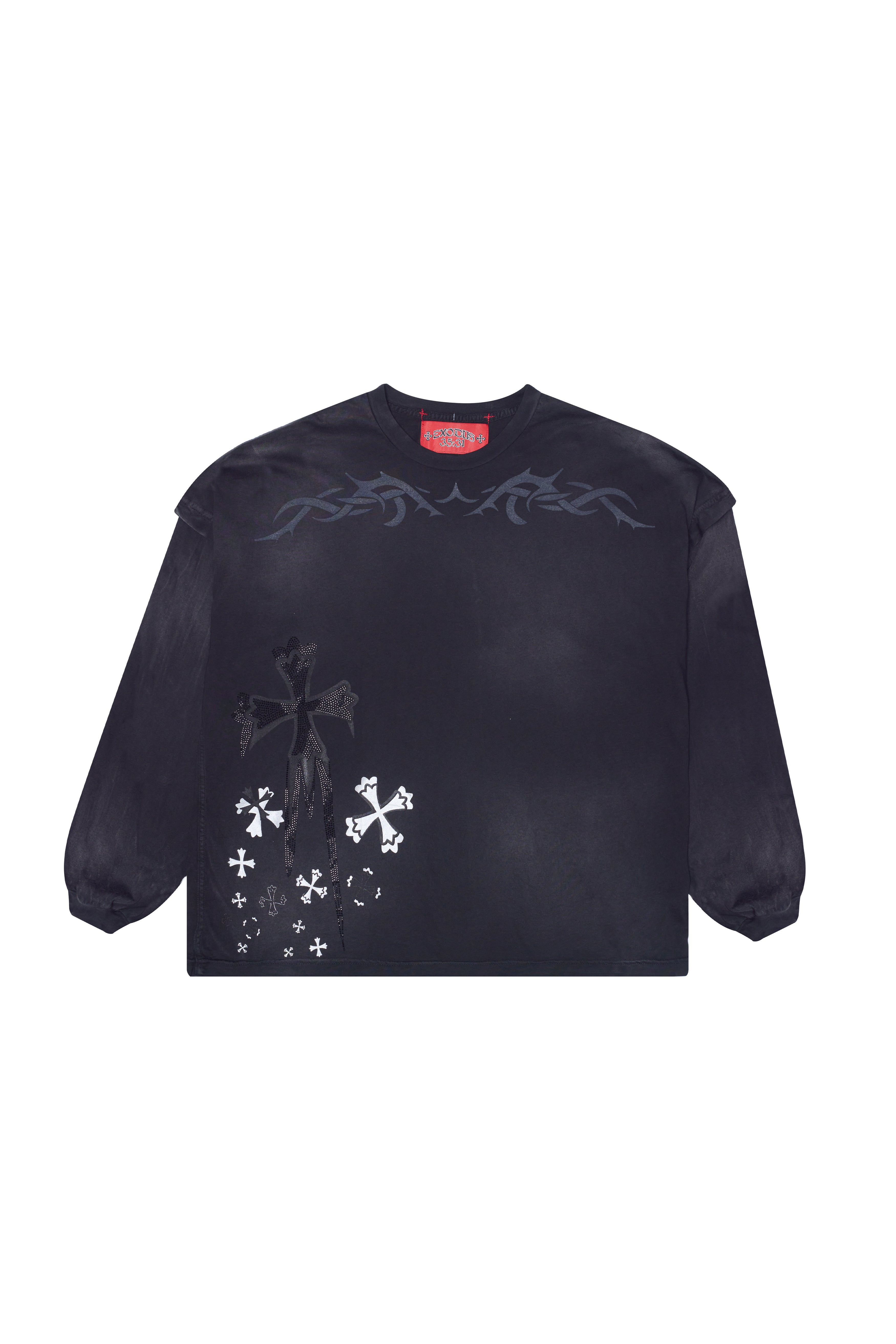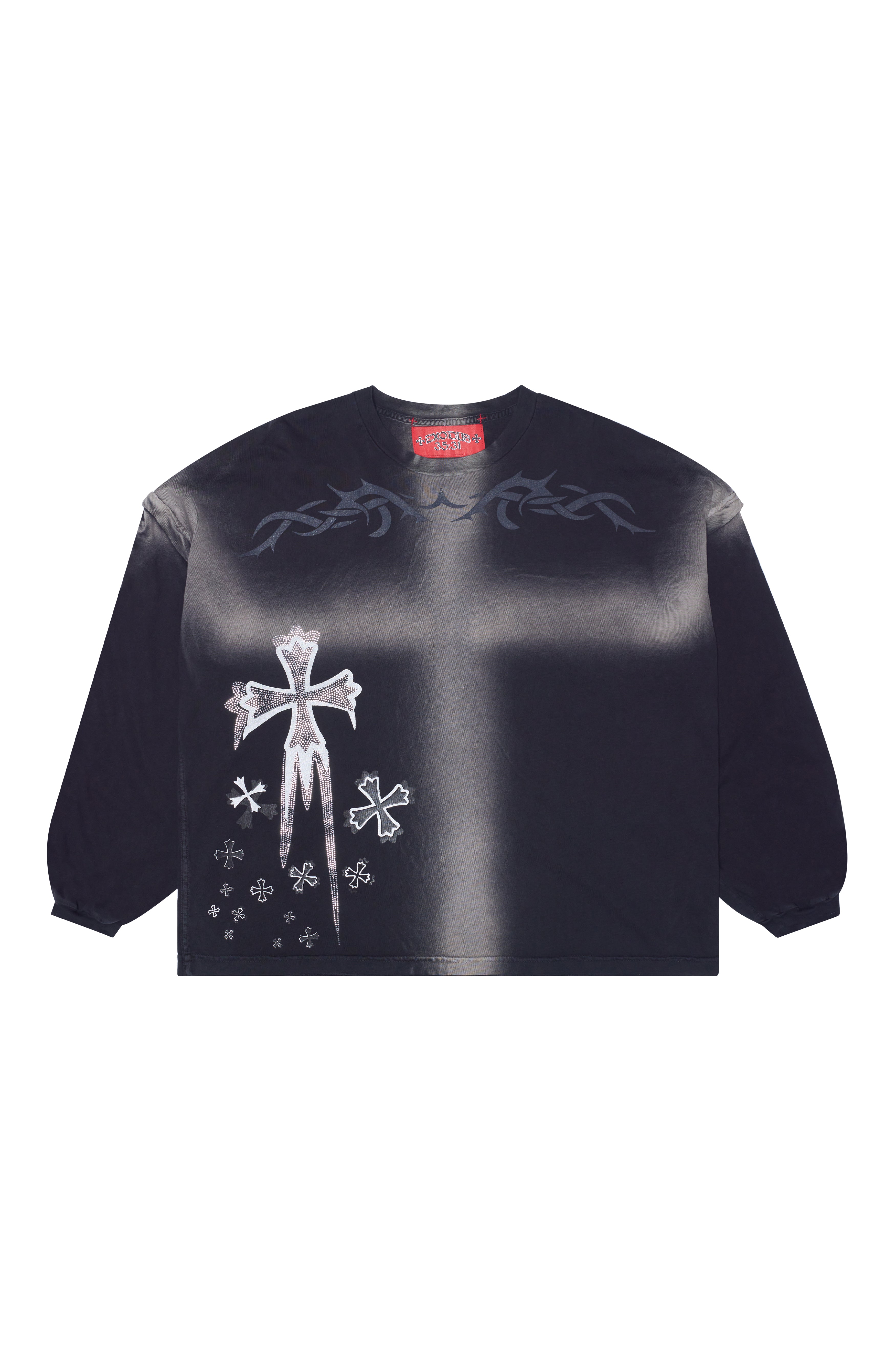 "CROSS DYE" RHINESTONE LONG SLEEVE